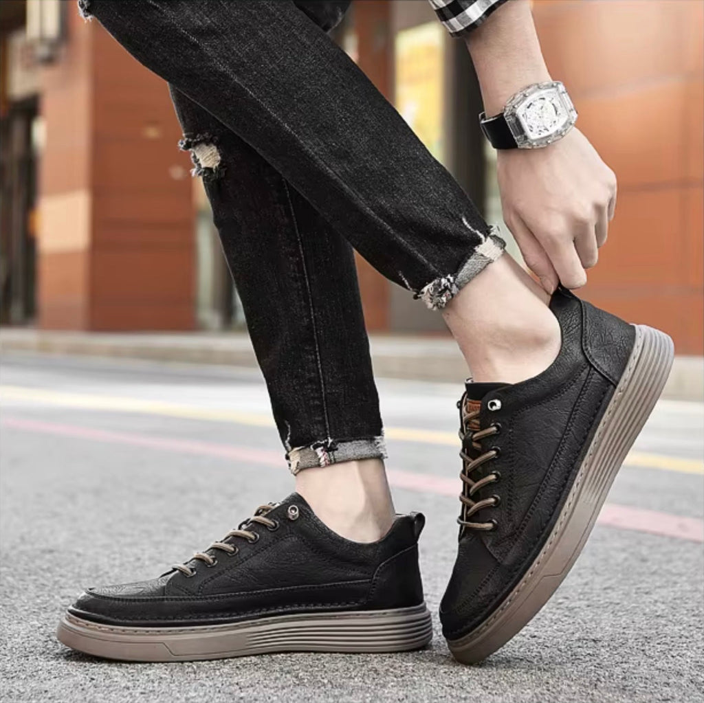 O Sapatênis Masculino Em Couro Premium apresenta boa durabilidade de longo prazo. Seu material de couro e acabamentos nos mínimos detalhes proporcionam um toque de elegância aliado ao conforto que garante um andar mais leve, especialmente para atender às suas necessidades.